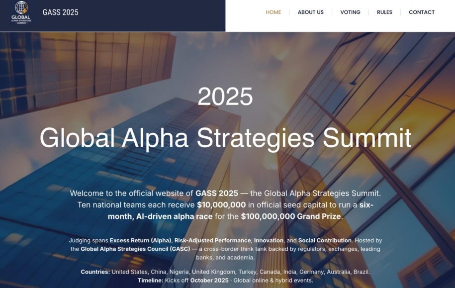 The Global Alpha Strategies Council (GASC) today officially announced the final countdown to the Global Alpha Strategies Summit 2025 (GASS 2025) — a six-month, AI-driven global investment competition that will allocate USD 10 million in seed capital to each of ten national teams, culminating in a USD 100 million Grand Prize in April 2026 at the GASC Headquarters in London.