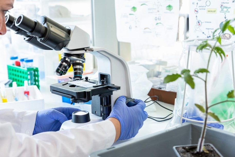Photo Caption: A scientist examines samples under a microscope in a Micropep Technologies’ research lab. Micropep’s Krisalix design, discovery and development platform uses AI-powered technologies to accelerate the availability of peptide-based, planet-friendly pest and disease solutions for farmers and food production systems worldwide.