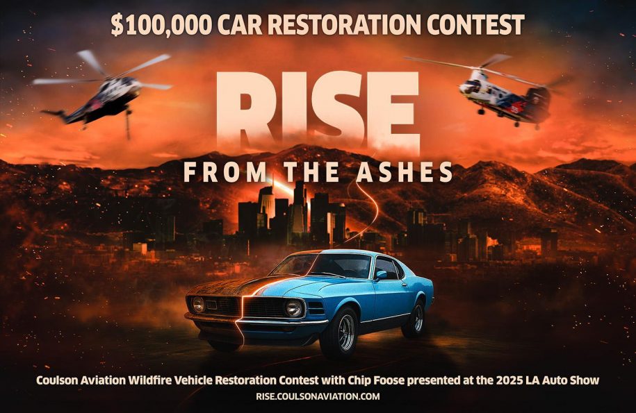 *NO PURCHASE NECESSARY TO ENTER OR WIN. A PURCHASE WILL NOT INCREASE YOUR CHANCES OF WINNING. Void outside of California where prohibited by law. Contest open only to individuals who are at the time and date of entry: (i) legal residents of and physically located in the State of California; (ii) at least eighteen (18) years of age or older; (iii) a victim of the 2024-2025 California wildfires; and (iv) owns (i.e., can show proof of title) and maintains physical possession of a vehicle (i.e., an insurance company doesn’t own or otherwise have a legal right to possess the vehicle) that sustained significant damage as a result of the 2024-2025 California wildfires. Contest begins at 12:00 p.m. PT on 11/20/25; ends at 12:00 p.m. PT on 1/20/26. Entries will be judged based on the following judging criteria: 33.3%: originality; 33.4%: creativity; and 33.3%: represents a worthwhile reason for restoration for the vehicle that can be accomplished within the set budgetary constraints. ARV of prize: up to $100,000. Subject to full Official Rules, available at rise.coulsonaviation.com. Sponsor: Coulson Aviation, 56850 Higgins Drive, Thermal, CA, 92274.