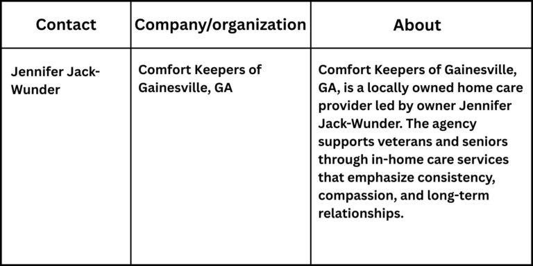 “At the heart of our work is honoring each veteran’s journey and building relationships that last, not just providing help for the moment,” said Jennifer Jack-Wunder, owner of Comfort Keepers of Gainesville, GA.
