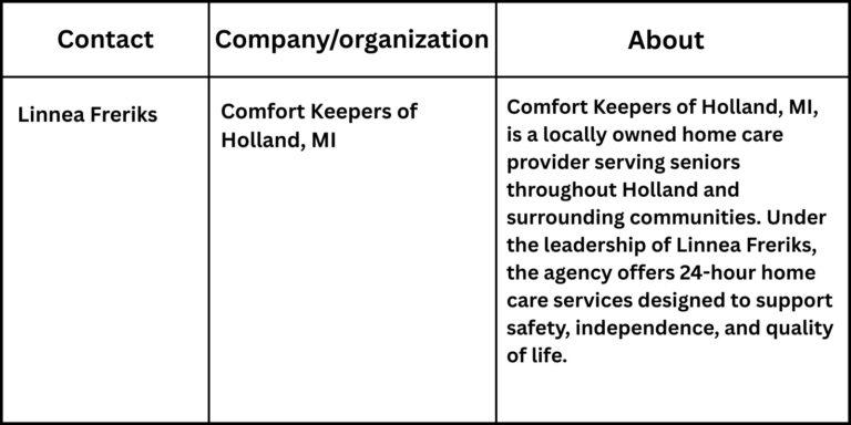 “Providing 24-hour care allows families to rest easier knowing their loved ones are supported with compassion, consistency, and respect at all times,” said Linnea Freriks, owner of Comfort Keepers of Holland, MI.