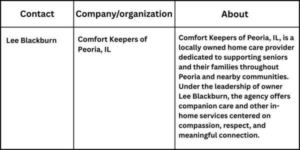 “Companion care brings comfort, conversation, and dignity into the home, helping seniors feel seen, valued, and supported each day,” said Lee Blackburn, owner of Comfort Keepers of Peoria, IL.