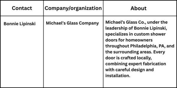 Michael’s Glass Co., led by Bonnie Lipinski, specializes in creating custom shower doors for homeowners in Philadelphia and surrounding areas. The company offers a full range of glass solutions, including frameless and semi-framed designs, all crafted with quality and precision. Michael’s Glass Co. is dedicated to providing durable, beautiful, and functional glass doors that transform bathrooms into elegant and practical spaces.