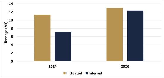 Figure 1: Change in Indicated and Inferred Resource Tonnage (2026 MRE vs. 2024 MRE)