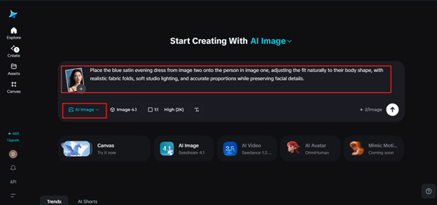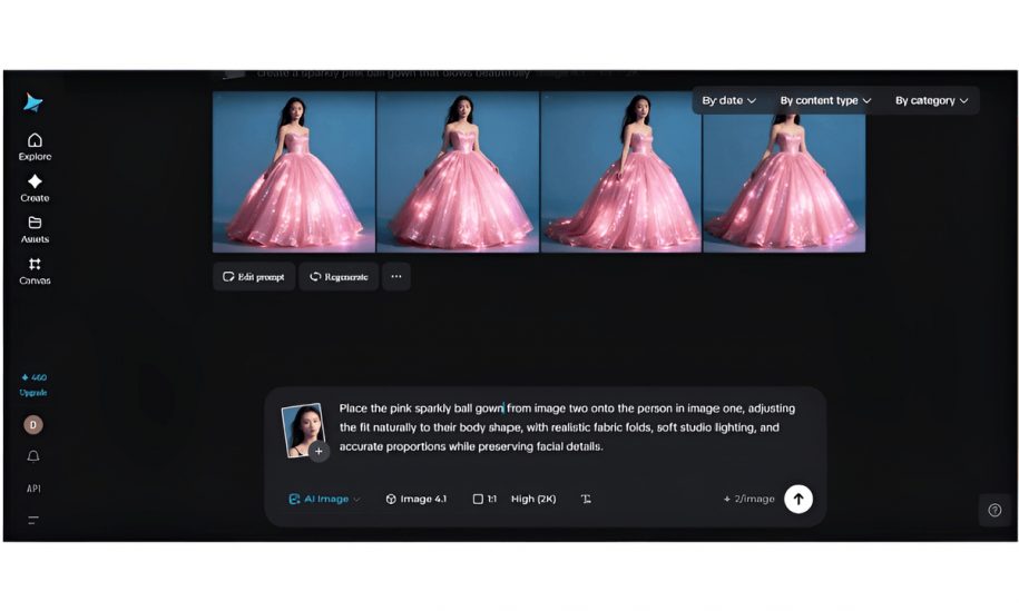 Reference is made to two images: a photo of a person (source) and an image of a garment or accessory. The two mentioned inputs become the foundation of the structure. From here, prompts can be used to identify garment position, fabric simulation, lighting/shadowing, and scale to line up correctly. According to documentation, “Clarity of prompts determines how well your clothes will fit, fall, seams will line up, and where your accessories will go.”