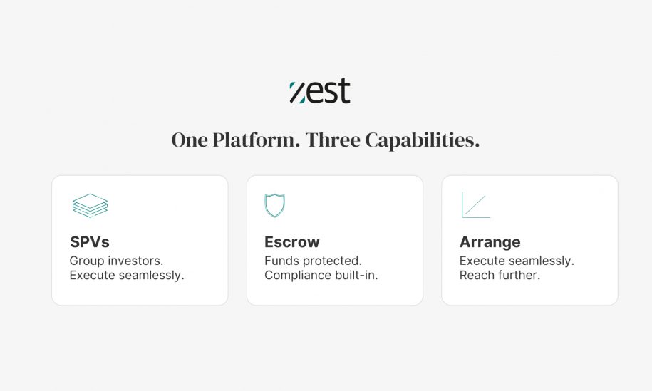 “The real power is in the integration: one platform, three capabilities working together,” said Zuhair Shamma, Co-founder and Chief Executive Officer of Zest Equity. “Here’s how it works in practice: A recent deal used Zest Arrange to market an exclusive opportunity to investors. An SPV was structured to group participants and meet minimum ticket requirements, then Zest Escrow was used to securely receive the funds. This is what frictionless, secure, automated private market transactions look like: everything you need to design deals, meet investor requirements, and close faster with full regulatory compliance and institutional clarity.”