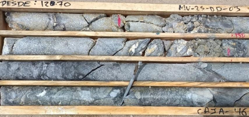 Hole MV25-DD02 was completed to a length of 239 meters (Figure 2). The hole dominantly intersected the Vizcacha Hydrothermal Breccia from collar to 145 meters depth. Brecciated dacite-andesite porphyry (DAP) dominated the deeper portion of the hole, with abundant sulfide mineralization.