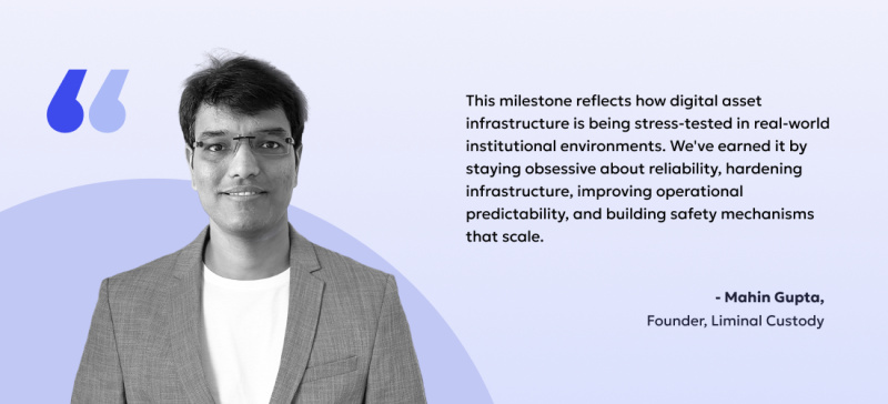 “Crossing $100 billion is not just a growth milestone. It reflects how digital asset infrastructure is being continuously stress-tested in real-world institutional environments. We’ve earned this milestone by staying obsessive about reliability: hardening the infrastructure, improving operational predictability, and building safety mechanisms that hold firm as complexity and concurrency increase.” – Mahin Gupta, Founder & CEO, Liminal Custody.