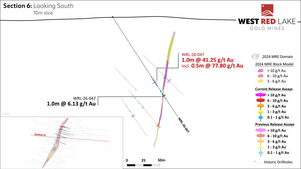 FIGURE 11: Fork drill section showing assay highlights for Holes WRL-25-047.