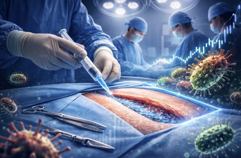 In the pivotal Phase 3 SHIELD II trial, a prospective, randomized, double-blind study of 798 patients undergoing abdominal colorectal surgery with large incisions, D-PLEX100 met its composite primary endpoint, showing a 40% reduction in SSIs, surgical reinterventions, and mortality combined (p<0.005) when added to standard of care. In a key secondary analysis, the product demonstrated a 60% reduction in SSI rates specifically (p<0.005). Conventional SSI prevention relies on systemic antibiotics that clear the body within hours, long before most infections develop. D-PLEX100 addresses this gap by maintaining high local antibiotic concentrations at the wound site for weeks, using only a fraction of the doxycycline dose that systemic delivery would require.